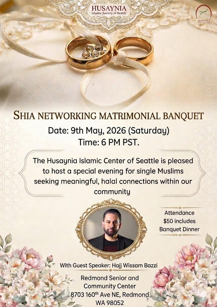 Reserve your seat for the Seattle Shia Muslim Single Connection Event by completing the registration form with all required details, including your name, contact information, personal background, and preferences and payment details to reserve your seat as part of registeration process.